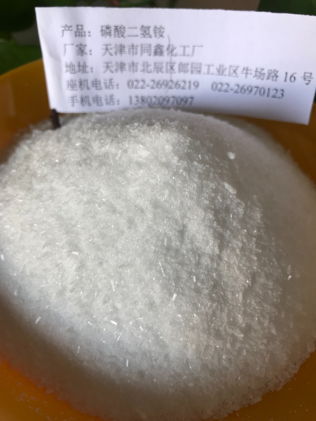 主要用途:磷酸二氫銨用作肥料和木材、紙張、織物的防火劑(如作火柴梗和蠟燭芯的滅燼劑)等。也用作反芻動物飼料添加劑。